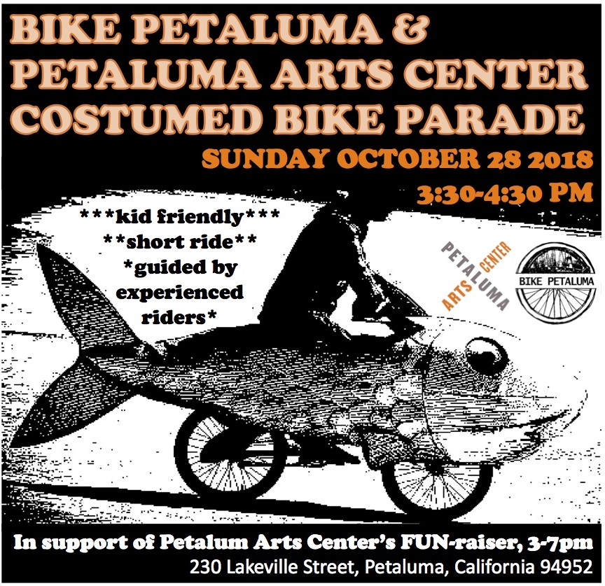 Join Bike Petaluma, in partnership with the Petaluma Arts Center event “Sunday afternoon at the PAC FUN-raiser” for a costumed bike parade.